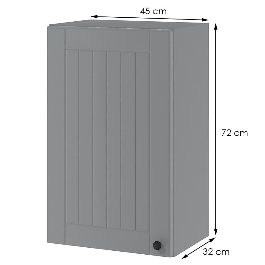 Frezowane fronty wykonane są z foliowanej płyty MDF, a dodatkowo matowe wykończenie nadaje im subtelnego, nowoczesnego wyglądu. Fronty w szarym kolorze stanowią idealne dopełnienie dla korpusu szafki i cokołu, który również utrzymany jest w szarości. Konstrukcja korpusu opiera się na wytrzymałej płycie wiórowej, co gwarantuje trwałość i solidność. Szafkę można zamontować w górnym segmencie kuchni, co pozwala na praktyczne zagospodarowanie przestrzeni kuchennej. Dodatkowo, w zestawie znajduje się cichy domyk, co sprawia, że korzystanie z tej szafki jest nie tylko stylowe, ale także komfortowe.