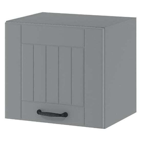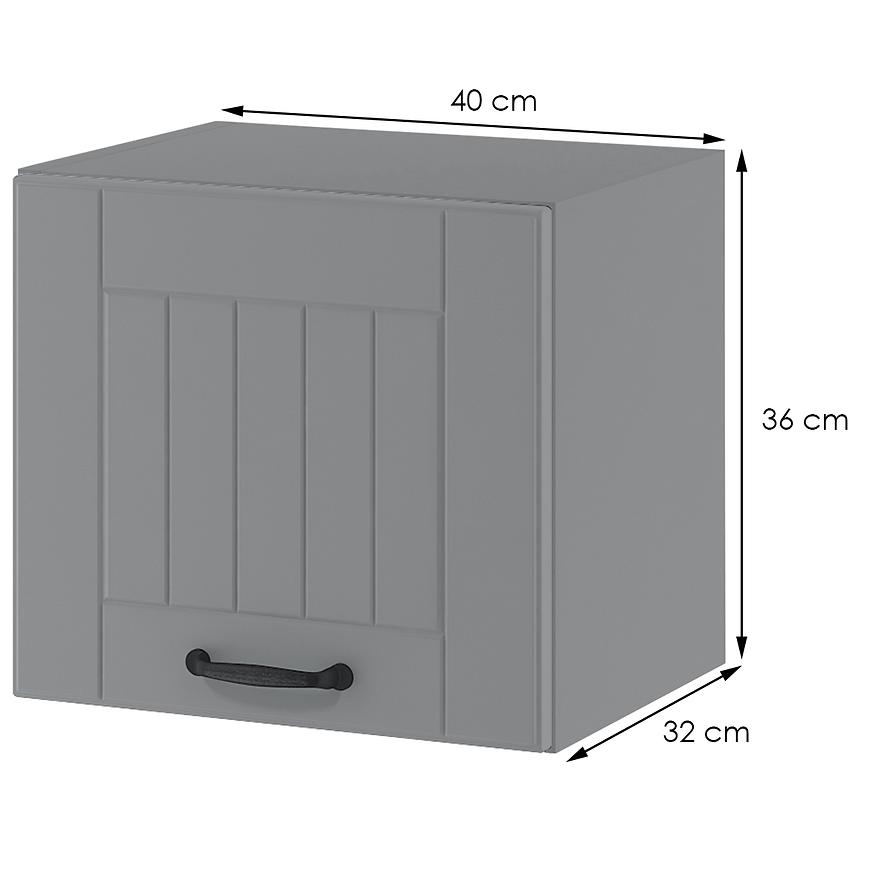 Neutralny odcień szarości nadaje szafce nowoczesnego i uniwersalnego wyglądu, który pasuje do wielu aranżacji kuchennych. Konstrukcja frontów wykonana jest z foliowanej płyty MDF, co gwarantuje trwałość i estetyczny wygląd. Matowe wykończenie frontów dodaje szafce elegancji, a cokół w kolorze korpusu harmonijnie łączy się z całą konstrukcją. Korpus szafki wykonany jest z płyty wiórowej, co zapewnia solidność przez wiele lat. Szafki otwierane są od dołu, co ułatwia dostęp do przechowywanej zawartości.