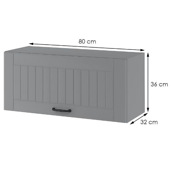 Neutralny odcień szarości nadaje szafce nowoczesnego i uniwersalnego wyglądu, który pasuje do wielu aranżacji kuchennych. Konstrukcja frontów wykonana jest z foliowanej płyty MDF, co gwarantuje trwałość i estetyczny wygląd. Matowe wykończenie frontów dodaje szafce elegancji, a cokół w kolorze korpusu harmonijnie łączy się z całą konstrukcją. Korpus szafki wykonany jest z płyty wiórowej, co zapewnia solidność przez wiele lat. Szafki otwierane są od dołu, co ułatwia dostęp do przechowywanej zawartości.