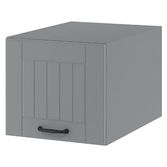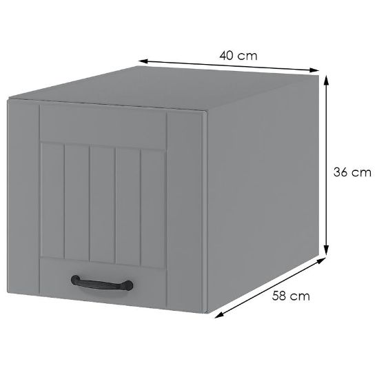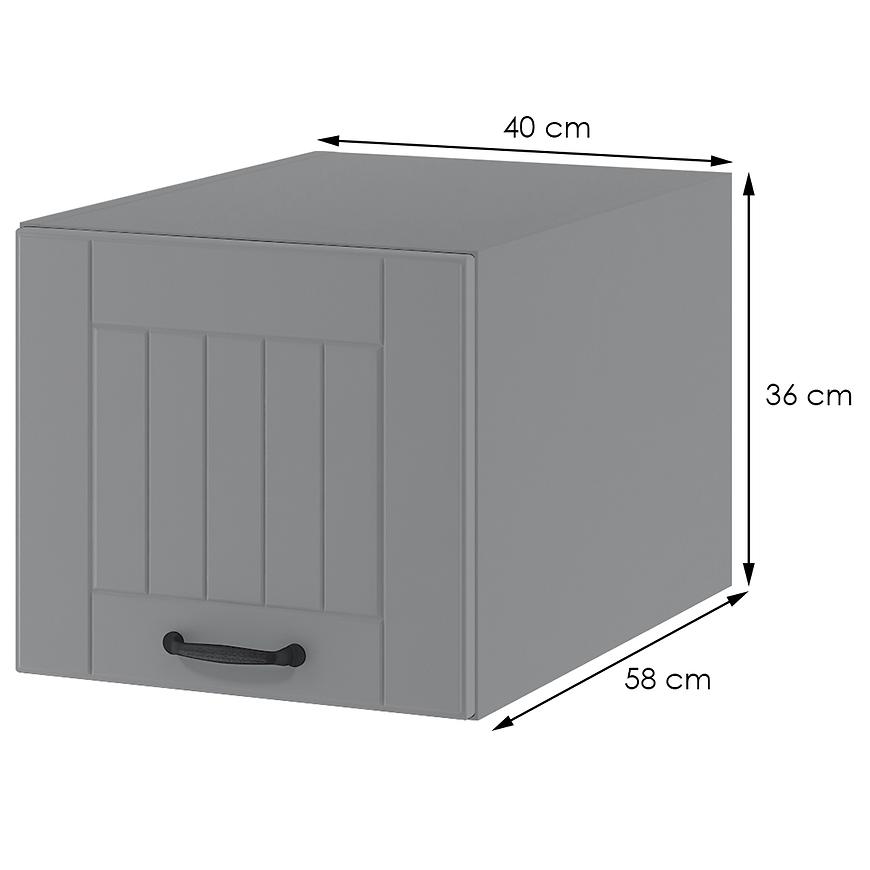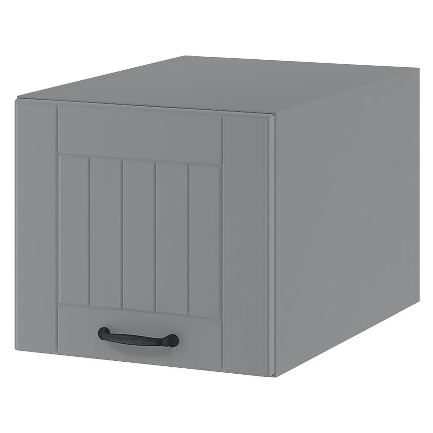 Neutralny odcień szarości nadaje szafce nowoczesnego i uniwersalnego wyglądu, który pasuje do wielu aranżacji kuchennych. Konstrukcja frontów wykonana jest z foliowanej płyty MDF, co gwarantuje trwałość i estetyczny wygląd. Matowe wykończenie frontów dodaje szafce elegancji, a cokół w kolorze korpusu harmonijnie łączy się z całą konstrukcją. Korpus szafki wykonany jest z płyty wiórowej, co zapewnia solidność przez wiele lat. Szafki otwierane są od dołu, co ułatwia dostęp do przechowywanej zawartości.