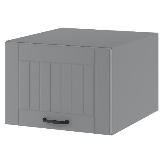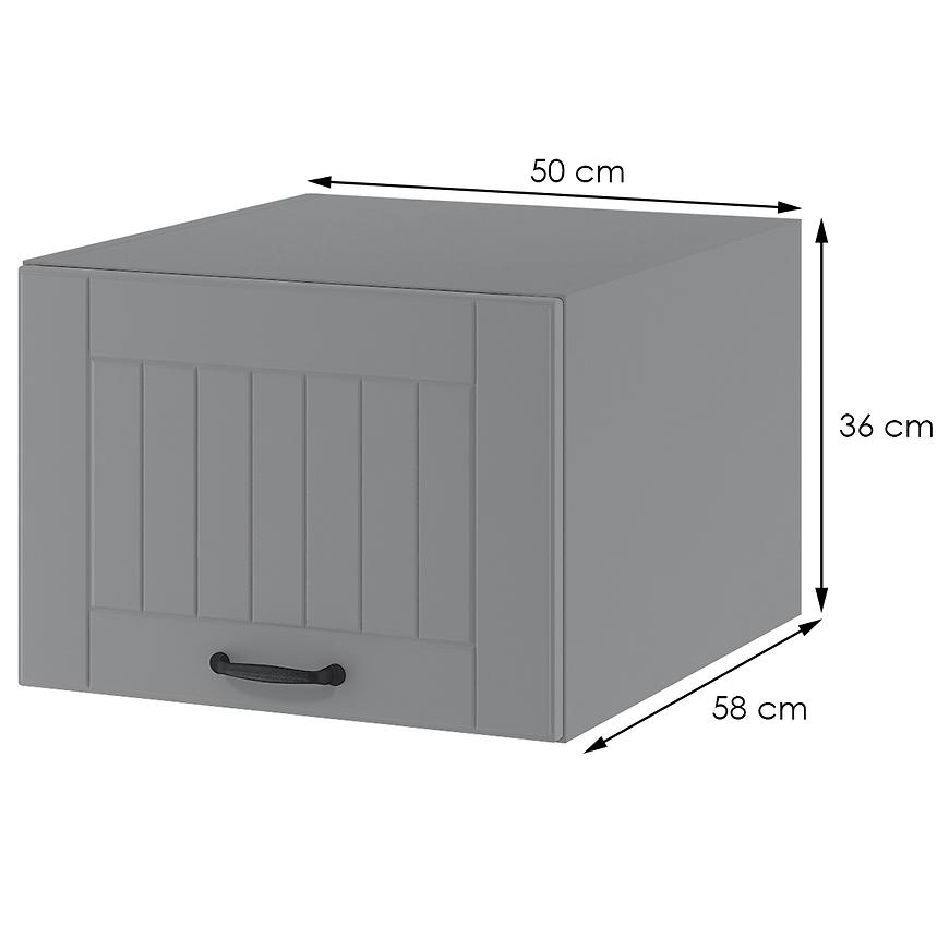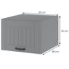 Neutralny odcień szarości nadaje szafce nowoczesnego i uniwersalnego wyglądu, który pasuje do wielu aranżacji kuchennych. Konstrukcja frontów wykonana jest z foliowanej płyty MDF, co gwarantuje trwałość i estetyczny wygląd. Matowe wykończenie frontów dodaje szafce elegancji, a cokół w kolorze korpusu harmonijnie łączy się z całą konstrukcją. Korpus szafki wykonany jest z płyty wiórowej, co zapewnia solidność przez wiele lat. Szafki otwierane są od dołu, co ułatwia dostęp do przechowywanej zawartości.