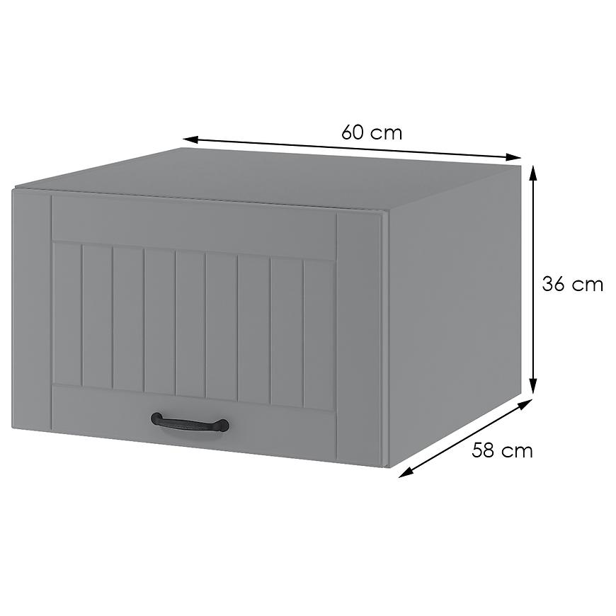 Neutralny odcień szarości nadaje szafce nowoczesnego i uniwersalnego wyglądu, który pasuje do wielu aranżacji kuchennych. Konstrukcja frontów wykonana jest z foliowanej płyty MDF, co gwarantuje trwałość i estetyczny wygląd. Matowe wykończenie frontów dodaje szafce elegancji, a cokół w kolorze korpusu harmonijnie łączy się z całą konstrukcją. Korpus szafki wykonany jest z płyty wiórowej, co zapewnia solidność przez wiele lat. Szafki otwierane są od dołu, co ułatwia dostęp do przechowywanej zawartości.