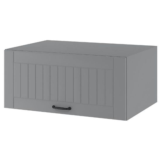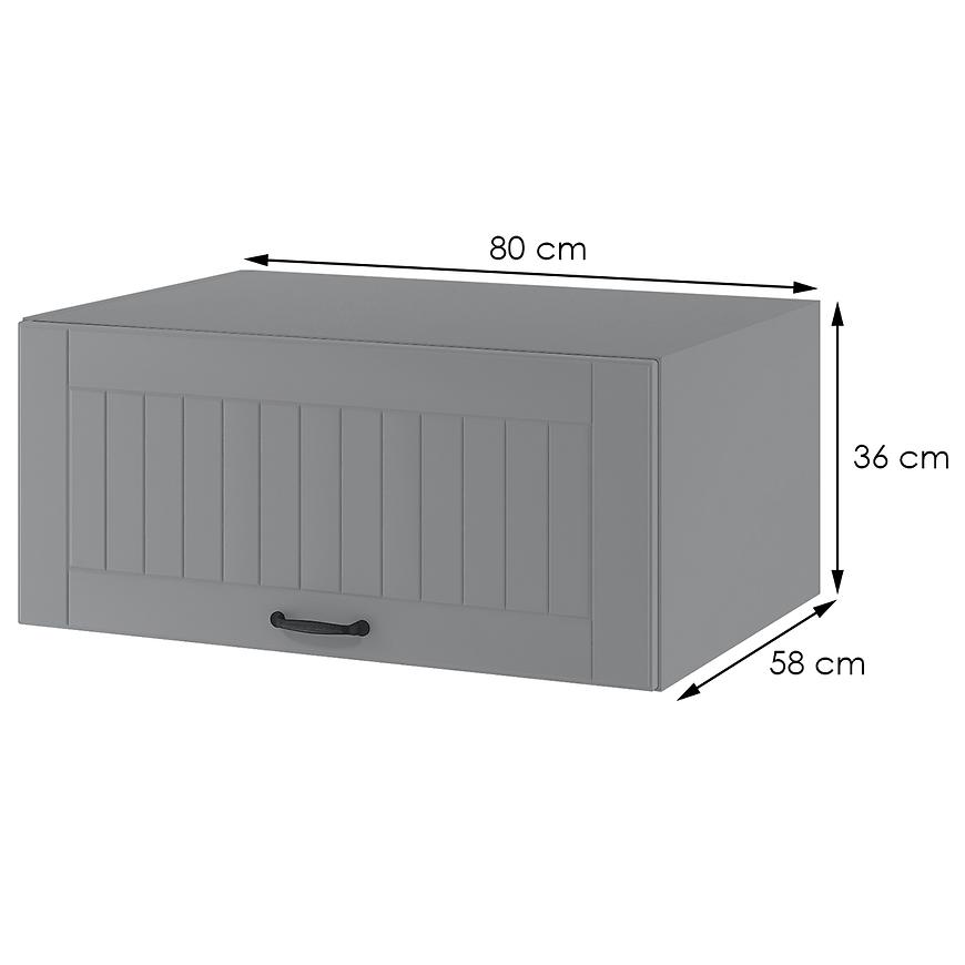 Neutralny odcień szarości nadaje szafce nowoczesnego i uniwersalnego wyglądu, który pasuje do wielu aranżacji kuchennych. Konstrukcja frontów wykonana jest z foliowanej płyty MDF, co gwarantuje trwałość i estetyczny wygląd. Matowe wykończenie frontów dodaje szafce elegancji, a cokół w kolorze korpusu harmonijnie łączy się z całą konstrukcją. Korpus szafki wykonany jest z płyty wiórowej, co zapewnia solidność przez wiele lat. Szafki otwierane są od dołu, co ułatwia dostęp do przechowywanej zawartości.