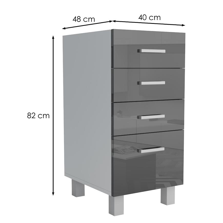 Fronty szafki utrzymane w intensywnym odcieniu czerni przyciągają uwagę i nadają kuchni niepowtarzalnego charakteru. Połyskujące wykończenie dodaje elegancji i nowoczesności, jednocześnie ułatwiając czyszczenie. Biały matowy korpus kontrastuje z kolorowymi frontami, tworząc harmonijny wygląd szafki.