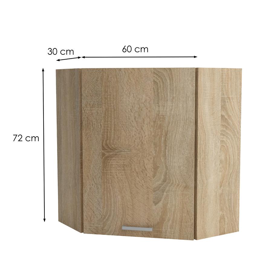 Szafka kuchenna narożna górna z kolekcji Lucjan to doskonałe rozwiązanie, łączące funkcjonalność i styl w jednym. Z kompaktowymi wymiarami szafka idealnie wpasuje się w przestrzeń kuchenną, oferując sporo miejsca do przechowywania.