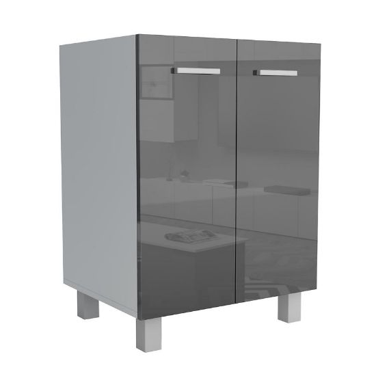 Fronty szafki utrzymane w intensywnym odcieniu czerni przyciągają uwagę i nadają kuchni niepowtarzalnego charakteru. Połyskujące wykończenie dodaje elegancji i nowoczesności, jednocześnie ułatwiając czyszczenie. Biały matowy korpus kontrastuje z kolorowymi frontami, tworząc harmonijny wygląd szafki.