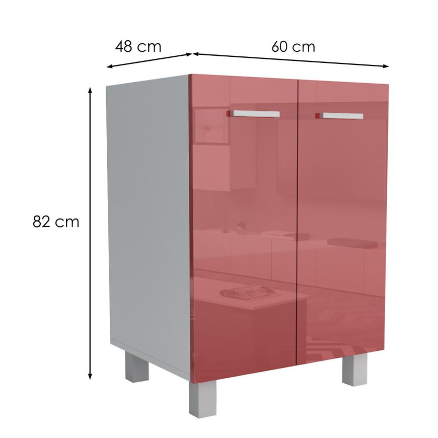 Fronty szafki utrzymane w intensywnym odcieniu czerwieni przyciągają uwagę i nadają kuchni niepowtarzalnego charakteru. Połyskujące wykończenie dodaje elegancji i nowoczesności, jednocześnie ułatwiając czyszczenie. Biały matowy korpus kontrastuje z kolorowymi frontami, tworząc harmonijny wygląd szafki.