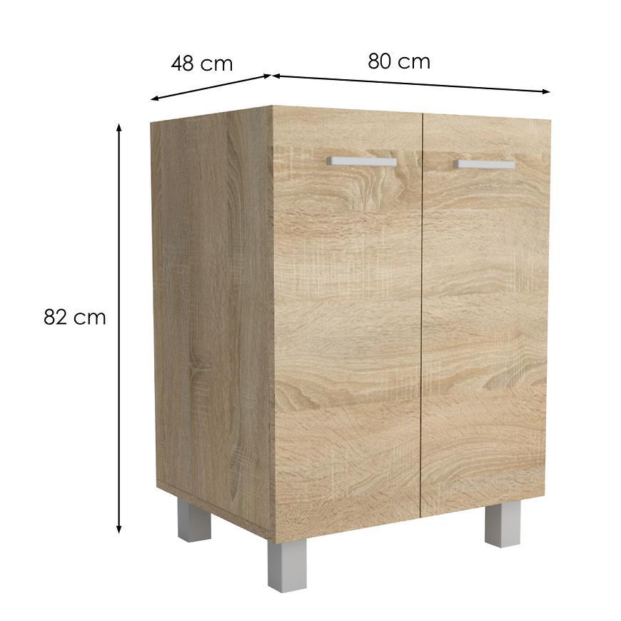Dwudrzwiowa szafka Lucjan oferuje dużą przestrzeń do przechowywania. Wnętrze zostało starannie zaprojektowane, aby zagospodarować miejsce pod zlewozmywakiem. Dodatkowo, nóżki gwarantują stabilność, a jednocześnie umożliwiają łatwe utrzymanie podłogi w czystości.