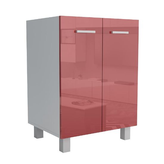 Fronty szafki utrzymane w intensywnym odcieniu czerwieni przyciągają uwagę i nadają kuchni niepowtarzalnego charakteru. Połyskujące wykończenie dodaje elegancji i nowoczesności, jednocześnie ułatwiając czyszczenie. Biały matowy korpus kontrastuje z kolorowymi frontami, tworząc harmonijny wygląd szafki.