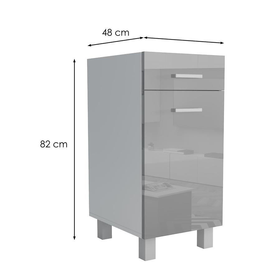 Szafka kuchenna stojąca Lucjan to niezastąpiony element kuchni, charakteryzujący się nowoczesnym designem i wysoką jakością wykonania. Ta elegancka szafka dostępna jest w kolorze szary połysk, co dodaje jej niepowtarzalnego uroku.