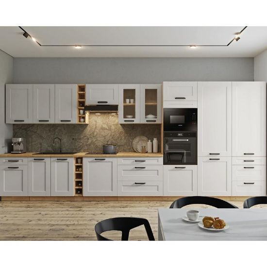 Kuchnia Luna Biały/Artisan to idealna propozycja dla osób, które szukają harmonijnego połączenia elegancji i funkcjonalności. Doskonale komponuje się z drewnianymi blatami, czarnymi lub metalicznymi dodatkami, tworząc stylową i przytulną przestrzeń do gotowania i spotkań w gronie bliskich.