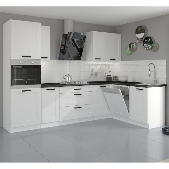 Kolekcja mebli kuchennych Luna pozwoli Ci stworzyć kuchnię marzeń. Zestaw obejmuje górne i dolne szafki kuchenne. Kuchnia dostępna jest w kolorze biały mat/biały.