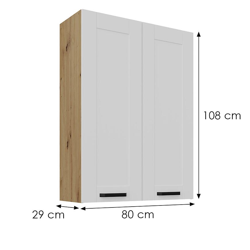 Szafka kuchenna Luna biały mat/artisan 80G-108 2F to elegancki i funkcjonalny element górnej zabudowy kuchennej, idealny do nowoczesnych i jasnych wnętrz. Należy do kolekcji LUNA, która wyróżnia się minimalistycznym designem, trwałymi materiałami oraz połączeniem matowych frontów z ciepłym wybarwieniem korpusu. Dwudrzwiowa szafka o szerokości 80 cm oferuje dużo miejsca do przechowywania naczyń, akcesoriów kuchennych i produktów spożywczych, pozwalając maksymalnie wykorzystać przestrzeń nad blatem roboczym.
