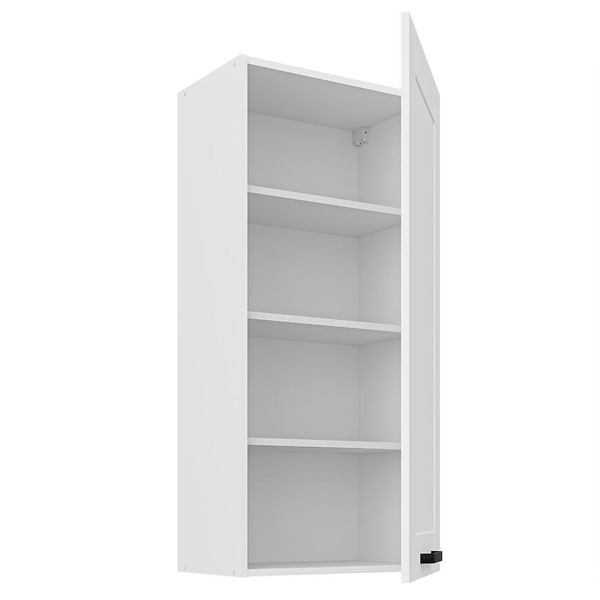 Szafka kuchenna Luna biały mat/biały 50G-108 1F to funkcjonalny moduł górnej zabudowy kuchennej, który łączy minimalistyczny design z praktycznym wykorzystaniem przestrzeni. Należy do kolekcji LUNA, wyróżniającej się frontami w matowej bieli oraz jednolitym, białym korpusem, nadającym kuchni nowoczesny i harmonijny wygląd.