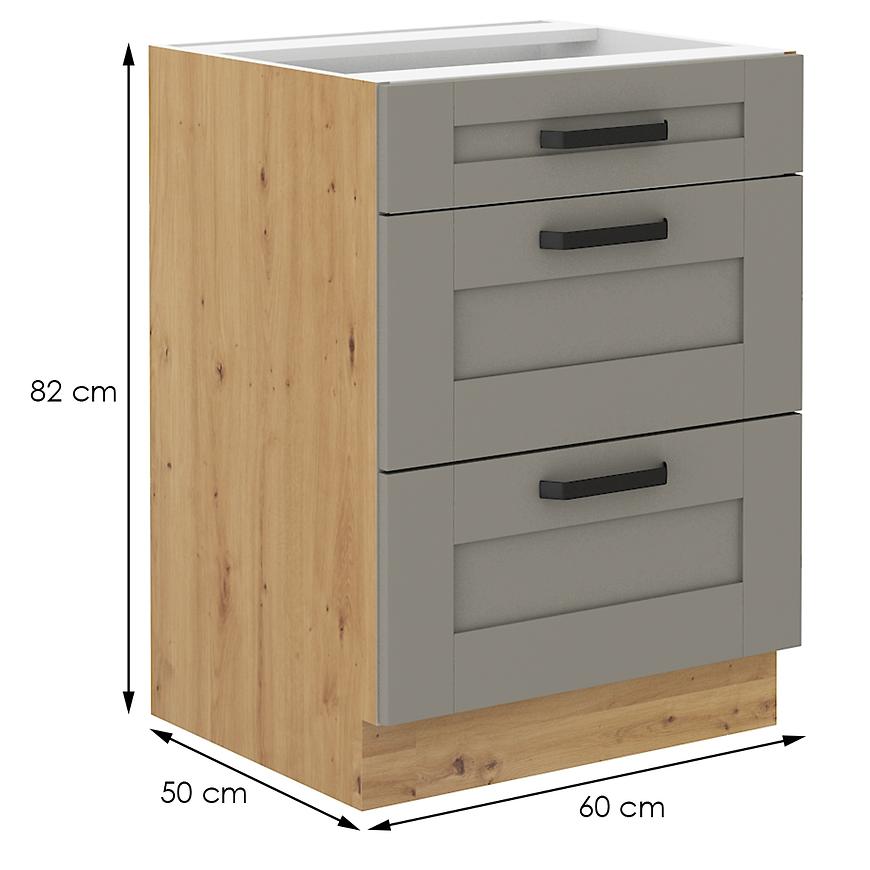 Szafka kuchenna Luna claygrey/artisan to idealne rozwiązanie do dolnej zabudowy kuchni - zapewnia dużą ilość przestrzeni do przechowywania. Cichy domyk, który jest częścią szafki i sprawia, że korzystanie z niej jest komfortowe i bezproblemowe.