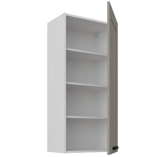 Szafka kuchenna Luna claygrey/biały 50G-108 1F to stylowy i praktyczny element górnej zabudowy kuchennej. Należy do kolekcji LUNA, łączącej nowoczesny design, trwałe materiały i minimalistyczne wykończenie. Górna szafka o szerokości 50 cm oferuje obszerną przestrzeń do przechowywania naczyń, akcesoriów kuchennych i produktów spożywczych, pozwalając efektywnie wykorzystać miejsce nad blatem roboczym.