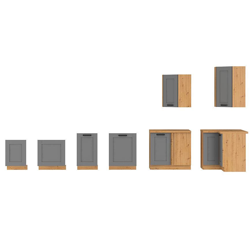Kolorystyka tego modelu to harmonijne połączenie elegancji i naturalności. Fronty w kolorze dustgrey prezentują się niezwykle nowocześnie i subtelnie, nadając kuchni wyjątkowego charakteru. Natomiast korpus w dekorze dąb artisan wprowadza ciepłą atmosferę do przestrzeni kuchennej.