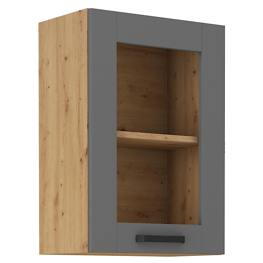 Szafka kuchenna Luna z kolekcji LUNA gwarantuje wysoką jakość i stylowy wygląd. Jej fronty w kolorze dustgrey nadają kuchni nowoczesnego charakteru, podczas gdy korpus w odcieniu dębu artisan wprowadza naturalny akcent do wnętrza. Fronty wykonane są z MDF foliowanego o matowym wykończeniu, co dodaje elegancji i trwałości. Konstrukcja korpusu opiera się na płycie wiórowej laminowanej, co zapewnia stabilność i wytrzymałość mebla. Szafka z przeszklonymi frontami pozwolaa wyeksponowac elegancką kolekcję kieliszków czy zastawę, jednocześnie zachowując porządek w kuchni.