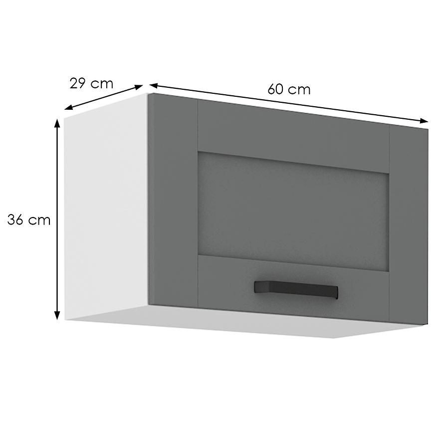 Korpus szafki, utrzymany w białym kolorze, wykonany został z płyty wiórowej laminowanej. To solidne i trwałe rozwiązanie, które zapewnia stabilność konstrukcji oraz łatwość utrzymania czystości. Kombinacja białego korpusu i szaro-matowych frontów nadaje kuchni lekkości, jednocześnie podkreślając minimalistyczną elegancję.