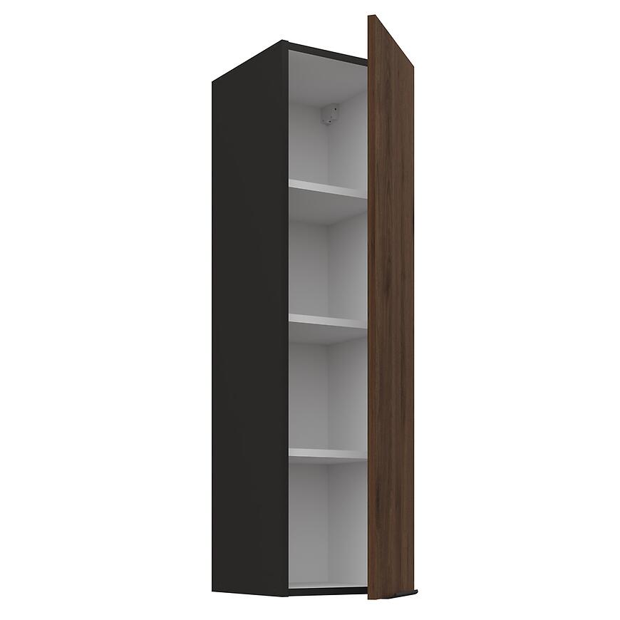 Model Monza orzech okapi 30G-108 1F to propozycja dla osób, które poszukują górnej szafki kuchennej łączącej elegancki wygląd z praktycznym zastosowaniem. Ciemny, drewnopodobny front w kolorze orzech okapi w połączeniu z czarnym korpusem nadaje kuchni wyrazisty charakter i podkreśla nowoczesny styl wnętrza.