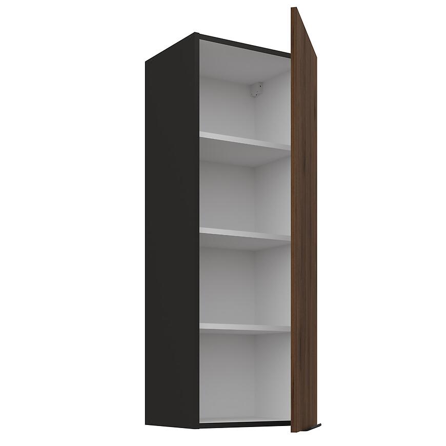 Model Monza orzech okapi 40G-108 1F to propozycja dla osób, które poszukują górnej szafki kuchennej łączącej estetykę ciemnego drewna z nowoczesną czernią. Drewnopodobny front, matowe wykończenie oraz czarny korpus nadają kuchni elegancki i uporządkowany wygląd.