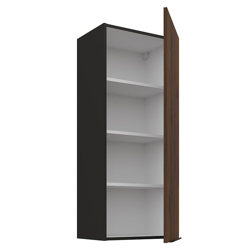 Model Monza orzech okapi 45G-108 1F to propozycja dla osób, które poszukują górnej szafki kuchennej łączącej elegancki wygląd z funkcjonalnością. Ciemny, drewnopodobny front w połączeniu z czarnym korpusem nadaje kuchni nowoczesny charakter, a matowe wykończenie ułatwia utrzymanie estetyki.