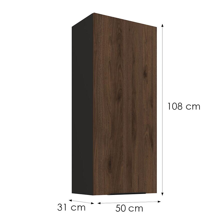 Dzięki wymiarom 50 cm szerokości, 108 cm wysokości i 31 cm głębokości, szafka jest optymalnie dopasowana do standardowych zabudów kuchennych. Stanowi uniwersalny moduł, który można zestawiać z innymi szafkami z kolekcji MONZA, tworząc spójny i uporządkowany układ górnych mebli.