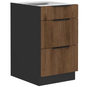 Szafka kuchenna z kolekcji Monza to nie tylko praktyczne rozwiązanie do przechowywania, ale również designerski element, który wnosi elegancję i nowoczesny charakter do Twojej kuchni. Kombinacja oryginalnego koloru frontów w odcieniu orzecha okapi oraz matowego wykończenia korpusu w kolorze czarnym sprawia, że szafka ta jest nie tylko funkcjonalna, ale również estetyczna.