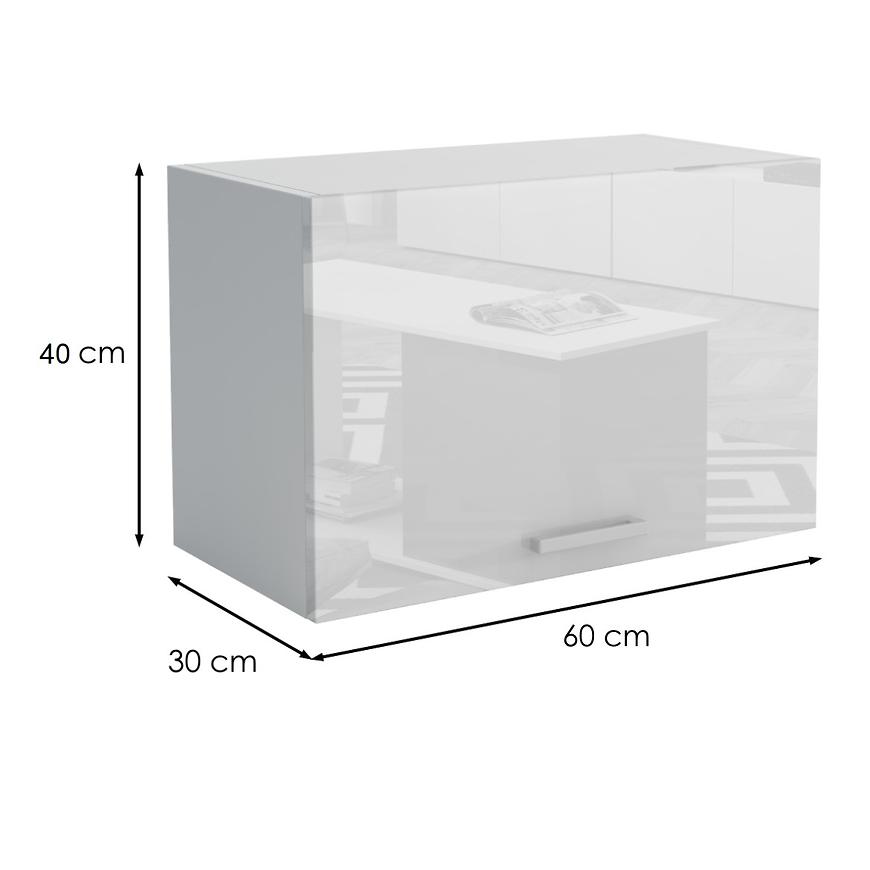Biały matowy korpus kontrastuje z błyszczącymi frontami, tworząc harmonijny wygląd szafki. Trwała konstrukcja mebli wykonana z płyty MDF i płyty wiórowej laminowanej zapewnia stabilność i wytrzymałość.