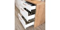 Zestaw mebli kuchennych Oskar jest ponadczasowy i uniwersalny. Lekkie, proste bryły pozwolą na stworzenie wnętrza idealnie dopasowanego do naszych potrzeb. Na uwagę zasługuje fakt, że szafki posiadają cichy domyk w zestawie co dodatkowo zwiększa komfort użytkowania.