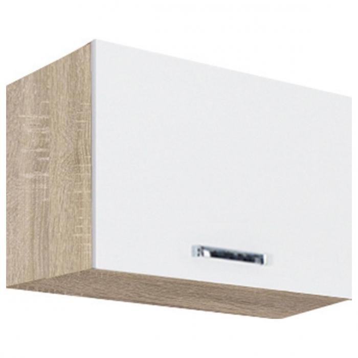 Fronty wykonano z MDF foliowanego, co nadaje im odporność na wilgoć i łatwość czyszczenia. Fronty w wykończeniu połysk/mat, Korpusy mebli wykonane są z płyty wiórowej laminowanej o matowym wykończeniu, co tworzy subtelny kontrast i wprowadza harmonię do wnętrza. Kolekcja dostępna jest w trzech eleganckich kolorach: sonoma, biały oraz cappuccino połysk, dzięki czemu łatwo dopasować ją do każdego stylu wnętrza.