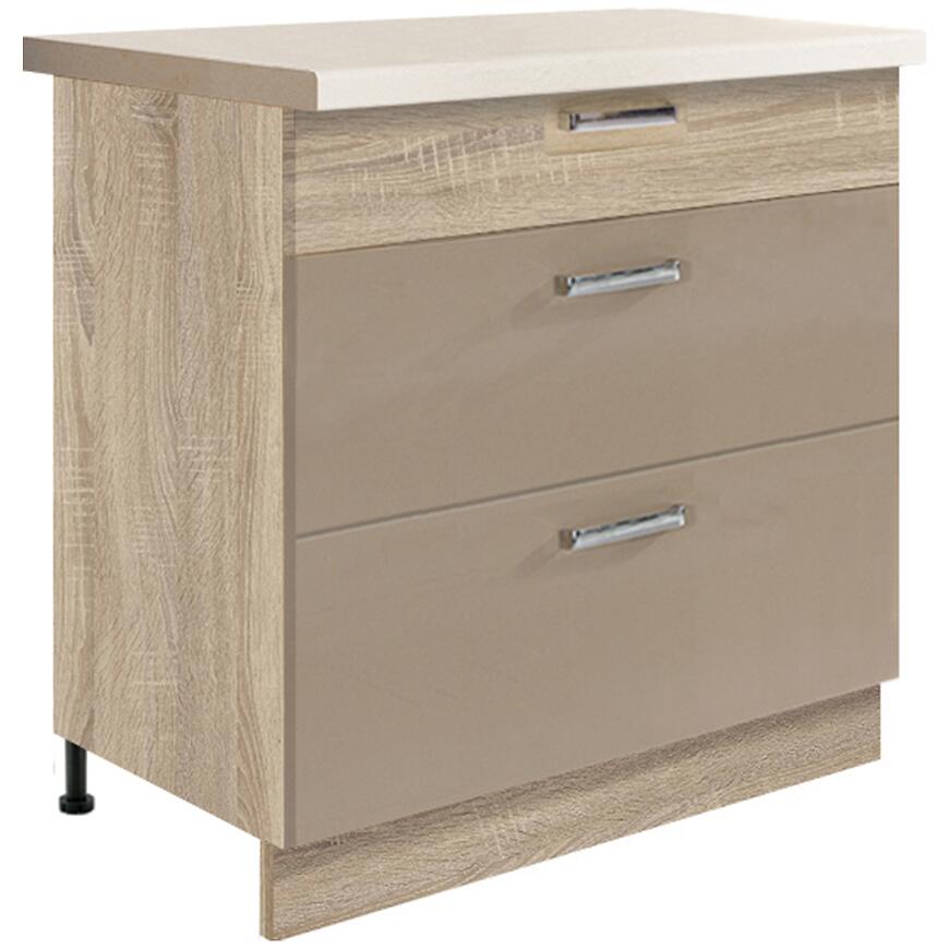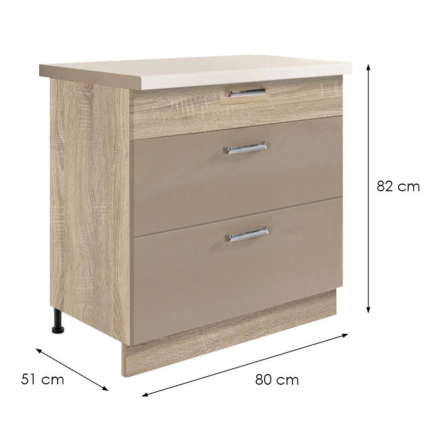 Szafka kuchenna dolna Premio 80 cm – dąb sonoma / cappuccino połysk