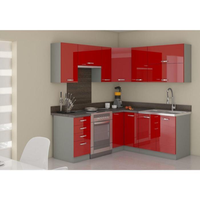 Zestaw mebli kuchennych ROSE to ciekawe zestawienie kolorystyczne frontów w czerwonym połysku z szarym korpusem. Fronty sa z płyty MDF dodatkowo zabezpieczone okleiną ABS, korpus to płyta laminowana. Producent zastosował przyjazną formę metalowych uchwytów. Dla wzmocnienia komfortu użytkowania szafki posiadają system cichego domyku Indamatic. Szuflady również posiadają system cichego domyku. Meble Rose tworzą niepowtarzalny design.