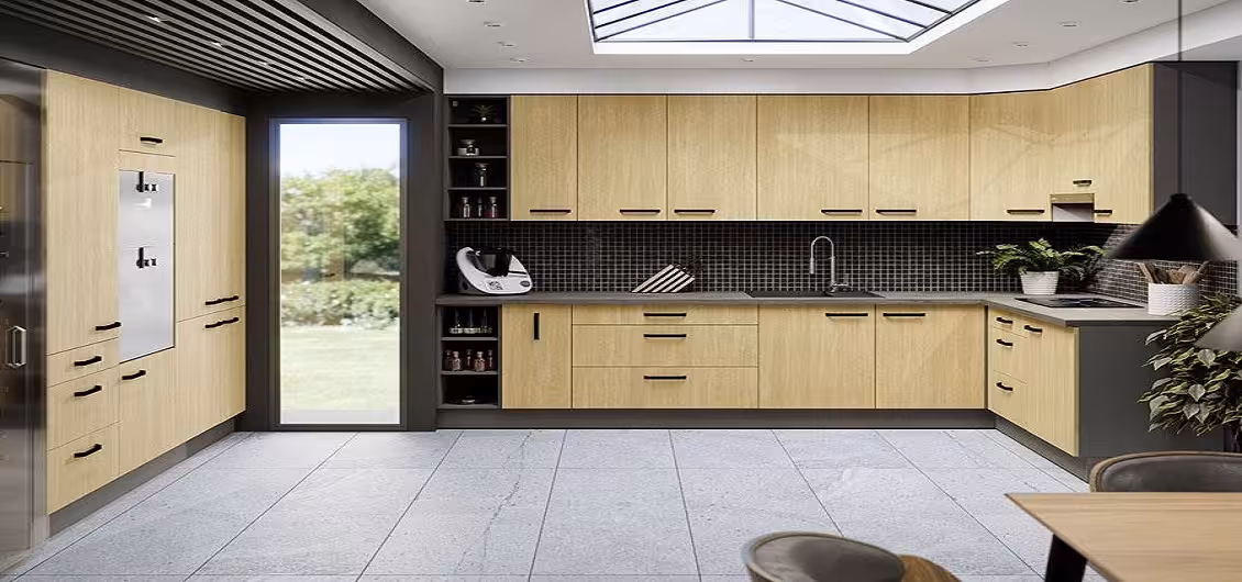 Kolekcja mebli do kuchni Scandi oferuje funkcjonalne i eleganckie rozwiązania dla tych, którzy cenią sobie nowoczesność oraz klasyczne piękno. Wykonane z wysokiej jakości płyty wiórowej laminowanej, meble z tej serii gwarantują trwałość i solidność przez wiele lat użytkowania. Bogactwo dekorów daje możliwość wyboru między jodełką, która dodaje przytulności, a antracytem, który wprowadza nutę industrialnego charakteru. Fronty i korpusy mebli zostały starannie wykończone w matowej fakturze, co nadaje im wyjątkowego uroku i sprawia, że wnętrze kuchni prezentuje się niezwykle stylowo.