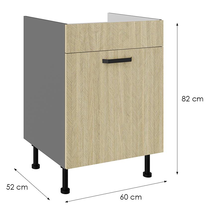 Szafka kuchenna SCANDI 60ZL 1S BB o wymiarach 60 cm szerokości, 52 cm głębokości i 82 cm wysokości to praktyczne i stylowe rozwiązanie do każdej kuchni. Matowe fronty w kolorze beżowym w połączeniu z szarym, antracytowym korpusem nadają wnętrzu nowoczesny charakter i doskonale wpisują się w aranżacje w stylu skandynawskim.
