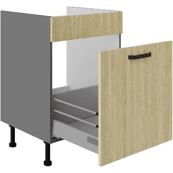 Połączenie beżowych frontów z antracytowym korpusem tworzy harmonijną kompozycję, która pasuje zarówno do jasnych, jak i ciemniejszych blatów. Szafka SCANDI 60ZL 1S BB sprawdzi się w nowoczesnych i minimalistycznych wnętrzach, podkreślając styl całej kuchni i zapewniając wygodę użytkowania.