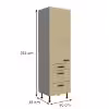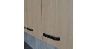 Fronty (kolor: drewnopodobne) i korpusy (kolor: antracyt) wykonane z odpornej płyty wiórowej laminowanej z wykończeniem matowym. Szafki posiadają cichy domyk w zestawie.