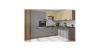 Zestaw mebli wyposażony jest w cichy domyk, co sprawia, że korzystanie z nich jest przyjemne i nie zakłóca spokoju w domu. Nóżki pod meblami dodają lekkości i ułatwiają utrzymanie podłogi w czystości. Montaż mebli jest łatwy i intuicyjny, dzięki czemu można szybko cieszyć się pięknem i funkcjonalnością kuchni.