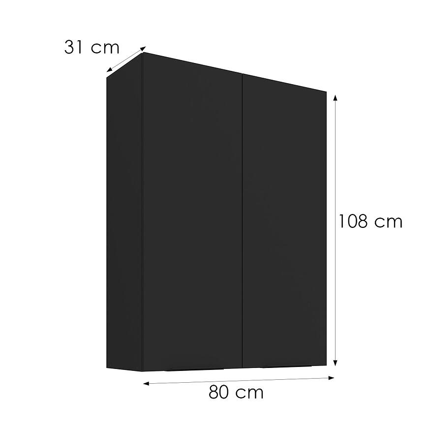 Górna szafka kuchenna o szerokości 80 cm, wysokości 108 cm i głębokości 31 cm zapewnia dużą przestrzeń do przechowywania, nie przytłaczając przy tym zabudowy. To idealne rozwiązanie do kuchni, w których liczy się estetyka połączona z praktycznym wykorzystaniem każdego centymetra.