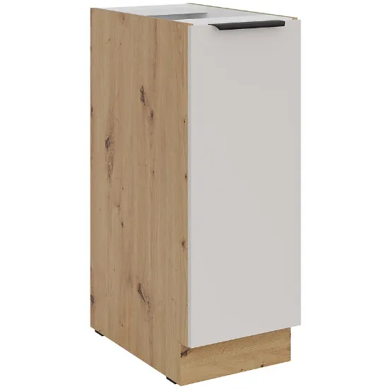 Szafka kuchenna Solea cashmere/artisan 30D CARGO BB z kolekcji SOLEA to funkcjonalny moduł dolnej zabudowy, który pozwala maksymalnie wykorzystać wąskie przestrzenie kuchenne. Matowe fronty w odcieniu cashmere współgrają z jasnym korpusem dąb artisan, tworząc spójny i elegancki efekt wizualny. Wymiary 82 × 30 × 52 cm sprawiają, że szafka doskonale sprawdzi się w ciasnych kuchniach oraz jako moduł uzupełniający większą zabudowę.
