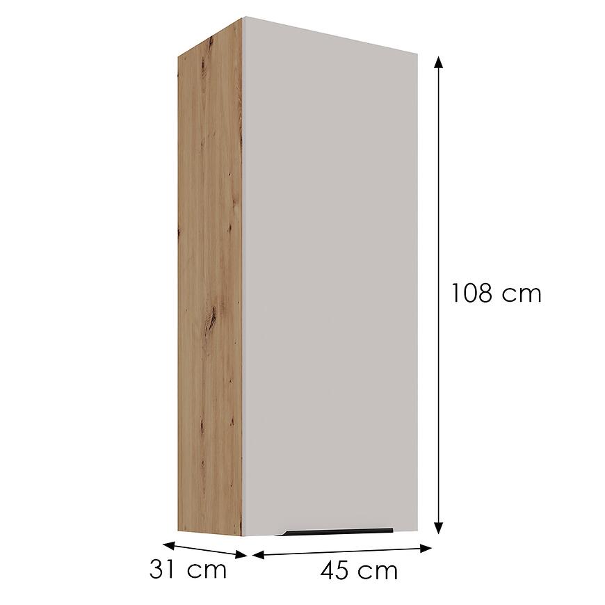 Szafka kuchenna Solea cashmere/artisan to propozycja dla osób, które szukają harmonijnego połączenia estetyki, trwałości i praktycznego przechowywania w kuchni. Model należy do kolekcji SOLEA i został zaprojektowany jako szafka kuchenna górna, idealna do zabudowy nowoczesnych oraz klasycznych aranżacji. Beżowe fronty w kolorze cashmere wprowadzają do wnętrza ciepło i subtelną elegancję, a jasny, drewnopodobny korpus w wybarwieniu dąb artisan doskonale je uzupełnia. Matowe wykończenie frontów i korpusu podkreśla spokojny charakter kuchni oraz ogranicza widoczność odcisków palców, co jest istotne w codziennym użytkowaniu.