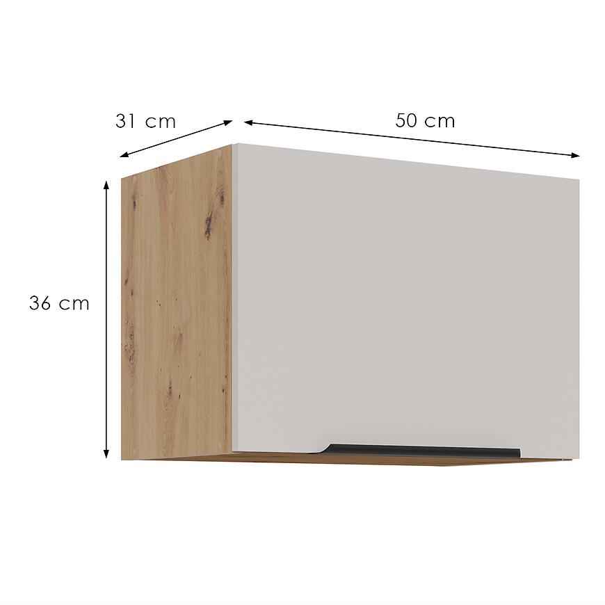 Szafka górna 50GU-36 1F z kolekcji SOLEA została zaprojektowana z myślą o praktycznym i estetycznym zagospodarowaniu przestrzeni kuchennej. Jej kompaktowe wymiary pozwalają na ustawienie nad blatem lub innymi meblami kuchennymi, zapewniając wygodny dostęp do przechowywanych akcesoriów, naczyń czy produktów spożywczych.