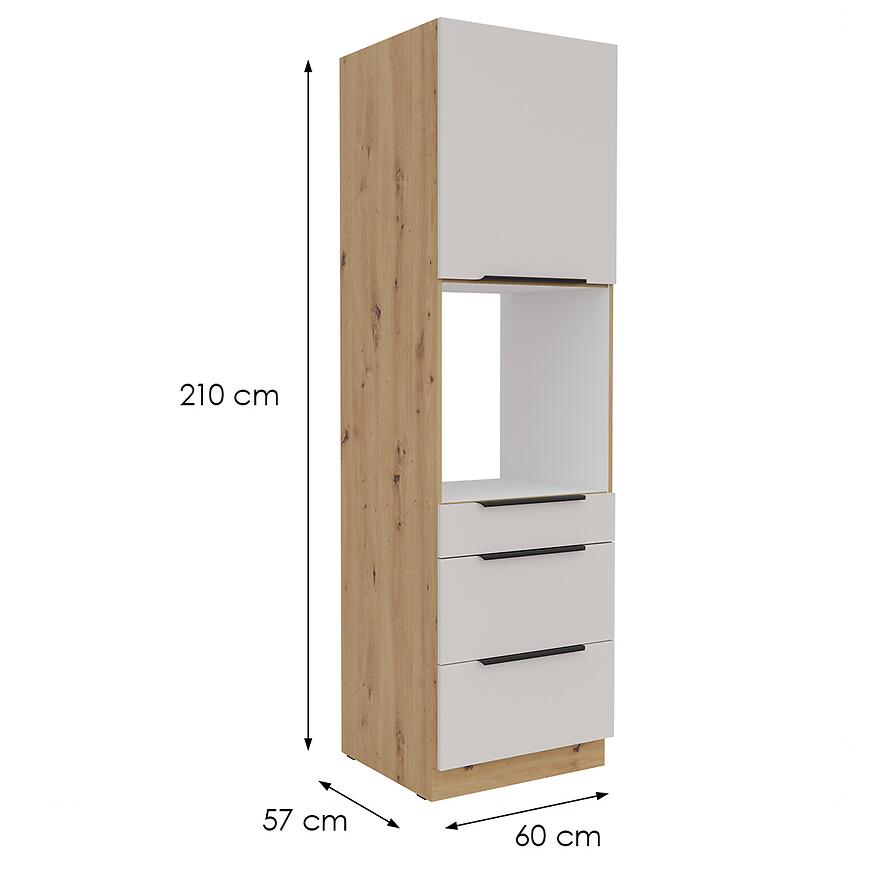Szafka kuchenna Solea cashmere/artisan 60DPS-210 1F 3S z kolekcji SOLEA to wysoka i pojemna kolumna, łącząca elegancki design z praktycznym układem wnętrza. Matowe fronty w odcieniu cashmere harmonizują z jasnym korpusem dąb artisan, tworząc spójną i nowoczesną zabudowę kuchenną. Wymiary 210 × 60 × 57 cm sprawiają, że szafka doskonale sprawdzi się w wysokich zabudowach, oferując dużą pojemność do przechowywania.