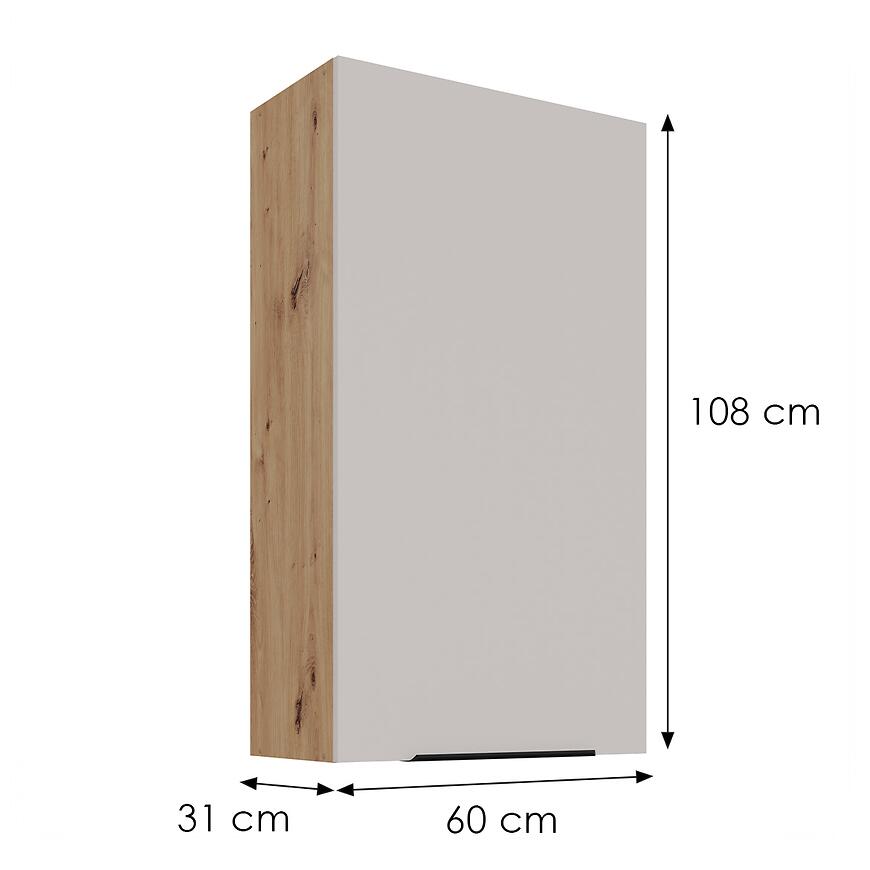 Szafka kuchenna Solea cashmere/artisan to propozycja dla osób, które szukają harmonijnego połączenia estetyki, trwałości i praktycznego przechowywania w kuchni. Model należy do kolekcji SOLEA i został zaprojektowany jako szafka kuchenna górna, idealna do zabudowy nowoczesnych oraz klasycznych aranżacji. Beżowe fronty w kolorze cashmere wprowadzają do wnętrza ciepło i subtelną elegancję, a jasny, drewnopodobny korpus w wybarwieniu dąb artisan doskonale je uzupełnia. Matowe wykończenie frontów i korpusu podkreśla spokojny charakter kuchni oraz ogranicza widoczność odcisków palców, co jest istotne w codziennym użytkowaniu.