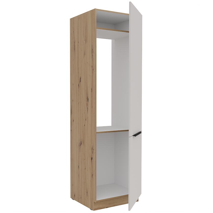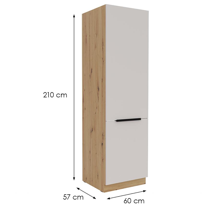 Szafka kuchenna Solea cashmere/artisan 60LO-210 2F z kolekcji SOLEA to wysoka, funkcjonalna kolumna kuchenna, która łączy nowoczesny design z praktycznym wykorzystaniem przestrzeni. Matowe fronty w odcieniu cashmere harmonizują z jasnym korpusem dąb artisan, tworząc elegancką i spójną aranżację kuchni. Wymiary 210 × 60 × 57 cm sprawiają, że szafka jest idealna do wysokich zabudów kuchennych, oferując dużą pojemność do przechowywania.