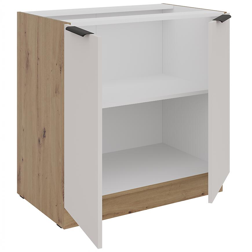 Szafka kuchenna Solea cashmere/artisan 80D 2F BB to funkcjonalny element zabudowy z kolekcji SOLEA, zaprojektowany z myślą o nowoczesnych wnętrzach, które łączą naturalne akcenty z subtelną kolorystyką. Matowe fronty w kolorze cashmere oraz korpus dąb artisan tworzą harmonijny duet, który nadaje kuchni ciepły i stylowy charakter. Dzięki wymiarom 82 × 80 × 52 cm szafka doskonale sprawdzi się jako baza do kuchni o różnym układzie i wielkości.