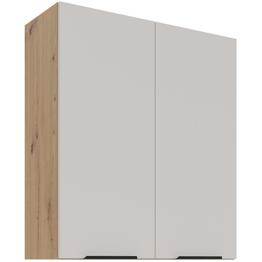 Szafka wisząca 80G-90 2F z kolekcji SOLEA to funkcjonalny i elegancki mebel kuchenny, który łączy nowoczesny design z praktycznym zastosowaniem. Fronty w odcieniu cashmere harmonijnie komponują się z korpusem w dekorze dąb artisan, tworząc subtelne, jasne wnętrze kuchenne. Matowe wykończenie frontów dodaje szafce delikatnej elegancji i sprawia, że całość prezentuje się lekko i estetycznie.