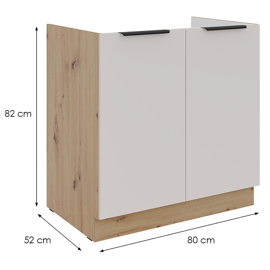 Szafka kuchenna Solea cashmere/artisan 80ZL 2F BB to propozycja dla osób ceniących harmonijne połączenie ciepłych barw i praktycznej konstrukcji. Model z kolekcji SOLEA łączy matowe fronty w kolorze cashmere z jasnym, drewnopodobnym korpusem dąb artisan, co pozwala stworzyć przytulną i stylową zabudowę kuchenną. To dolna szafka kuchenna o wysokości 82 cm, szerokości 80 cm oraz głębokości 52 cm – idealna do aranżacji kuchni zarówno małych, jak i przestronnych.