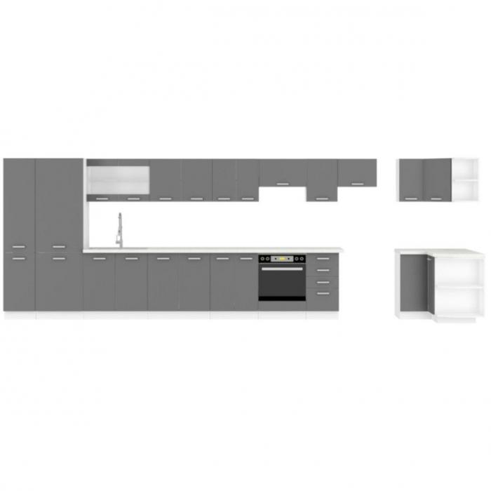 Kuchnia Sonia - zestaw w ciemnej kolorystyce nada wnętrzu nowoczesności. Ciemnoszary kolor frontów wraz z połyskiem powiększą optycznie kuchnię. W ofercie znajduje się wiele modeli szafek górnych i dolnych, dzięki czemu można skomponować idealną kompozycję kuchenną, dostosowując ją nie tylko do wolnej przestrzeni, ale także naszych potrzeb. Kuchnia z pewnością będzie funkcjonalna podczas codziennego użytkowania. Do kuchni należy dokupić osobno blat.