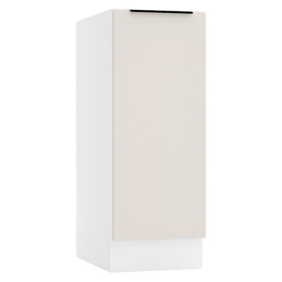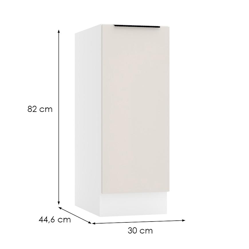 Korpus szafki SONJA został wykonany z białej matowej płyty wiórowej, co tworzy harmonijny kontrast z beżowymi frontami. Konstrukcja korpusu gwarantuje trwałość i stabilność mebla, co sprawia, że będziesz cieszyć się nim przez wiele lat.